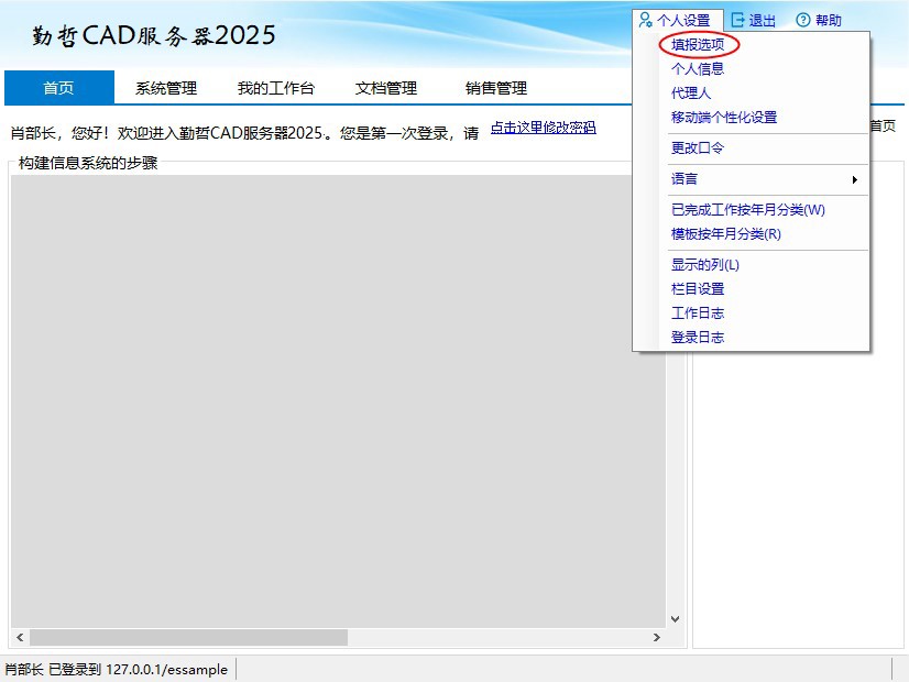 1)以“肖部长”身份登录系统,点击【个人设置】-【填报选项】菜单。